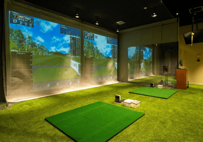 BEAGLE(ビーグル)は広々としたきれいなゴルフスタジオで、全打席にシミュレーションマシン完備&施設内にはパター練習グリーンもあります。